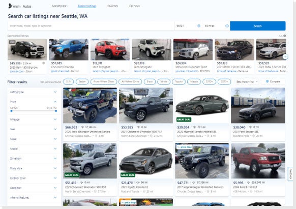 View of Microsoft Autos Marketplace. For information on getting your free listings here, reach out to msautosmarketplace@microsoft.com